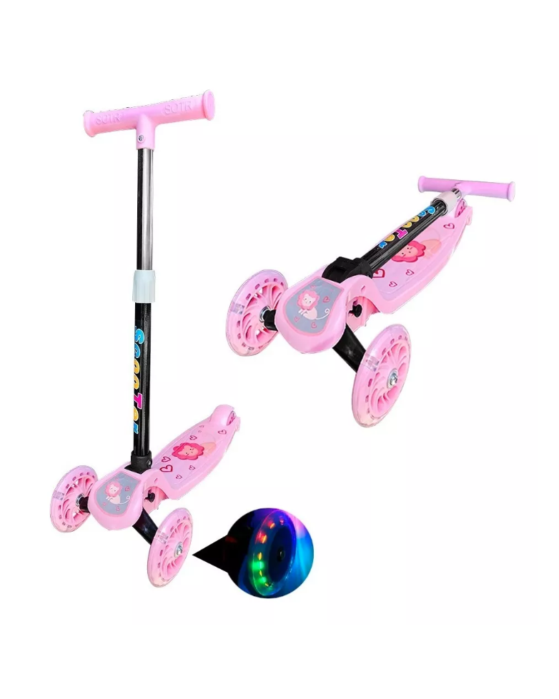/ Monopatín Tripatín Estampado Con Luz Scooter Rosa
