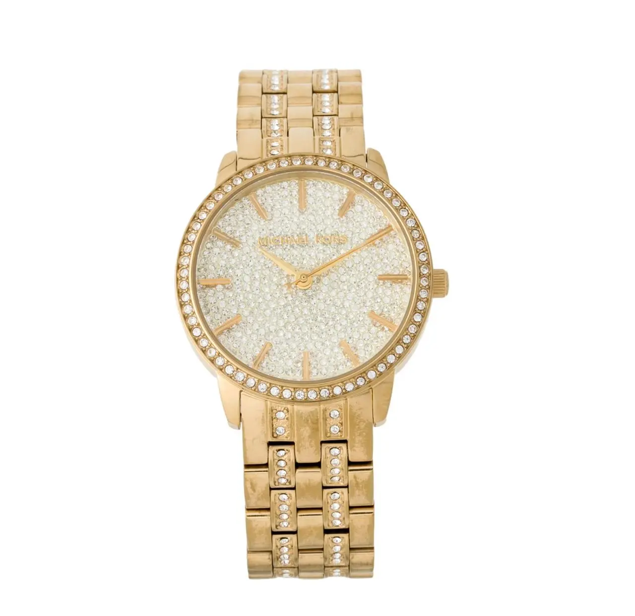 Reloj de lujo Michael Kors Modelo Mk 3459, con cristales de Swarovski de fino y completo, dorado. El reloj se entrega a la caja original Michael Kors.